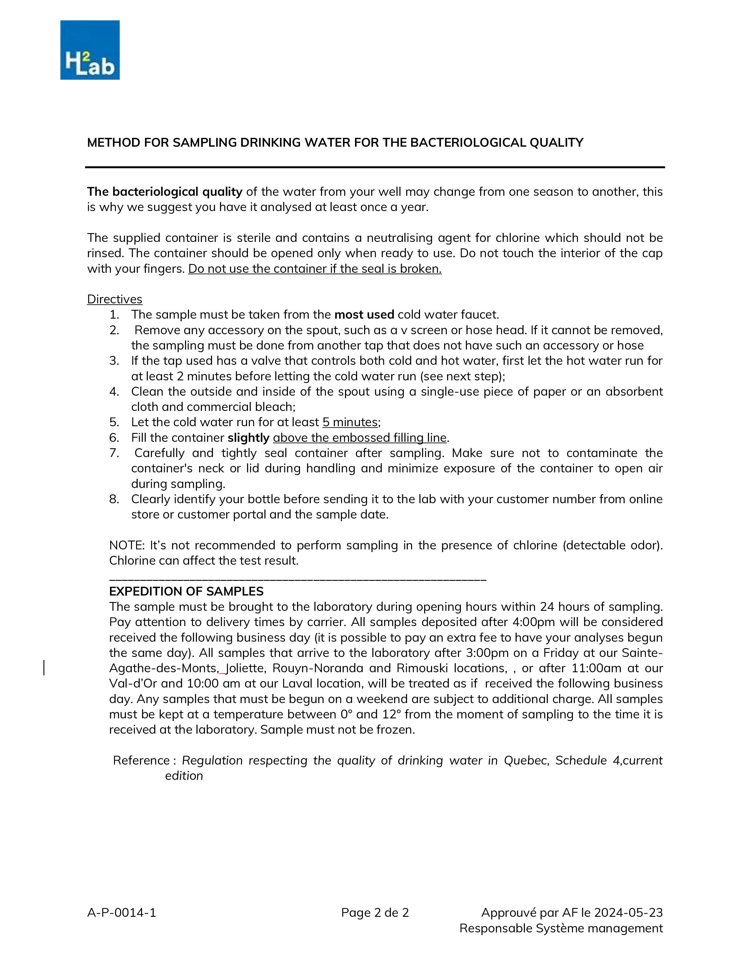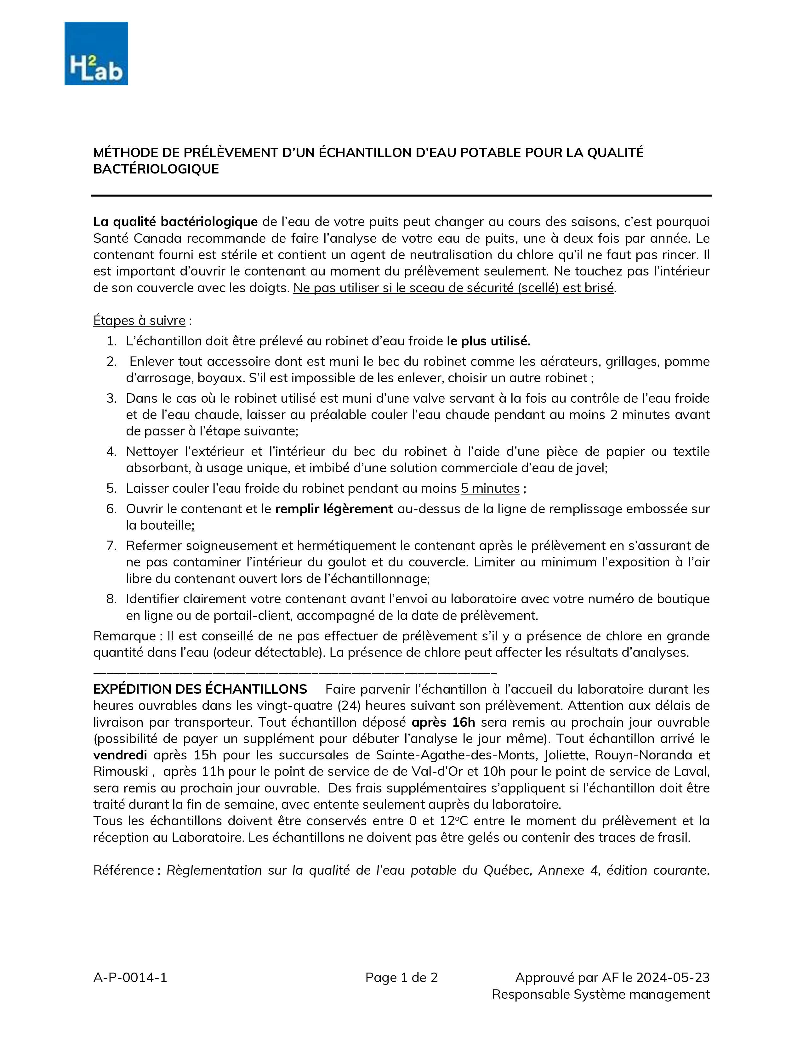 L’achat du test se fait directement en ligne auprès de H2Lab. Les bouteilles d’échantillonnage pourront être récupérées le 6 juin, lors de la journée naturellement accueillante, au kiosque de l’environnement.
